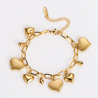 Vente de gros Bracelet chaîne trombone breloque cœur en acier inoxydable plaqué or