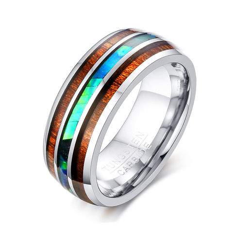 Bagues de fiançailles en carbure de tungstène 8MM Bagues hawaïennes en coquille d'ormeau en bois pour hommes femmes