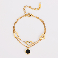 Bracelet à breloques rond en acier inoxydable à double couche réglable simple avec cœur creux