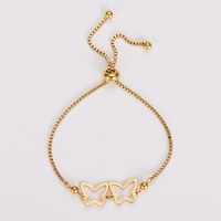Großhandel vergoldet Doppel Schmetterling Armband Edelstahl verstellbare Schieber Armband