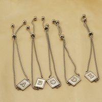 Benutzer definierte verstellbare Edelstahl Silber Personalisieren Shell Inlay Rechteck Charm Anfangs buchstaben Armband